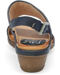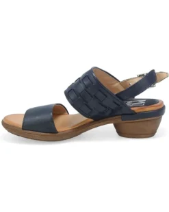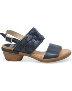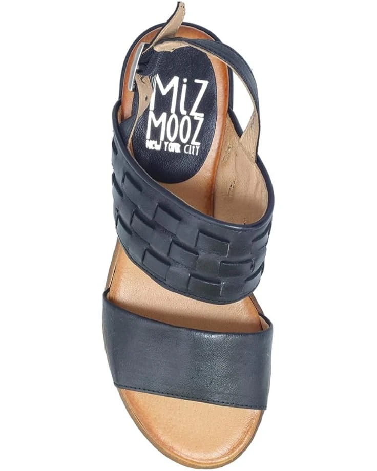 - Revel in effortless elegance and class wearing the Miz Mooz® Constance Flat Sandals. The almond toe pair features leather upper construction with buckled slingback strap closure and chunky stacked heels.