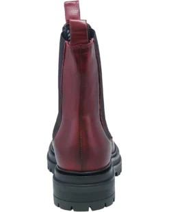 I am very picky about my shoes – I have big feet, and a bad back and knees. I am OBSESSED with these boots. The color is a rich burgundy, the leather is soft but still looks a bit shiny and “dressy.” I am between sizes so went up in sizing. The boot fits a somewhat narrow ankle, while still roomy in the toe area for my wider foot. Comfy right out of the box and I’m keeping them without hesitation!
